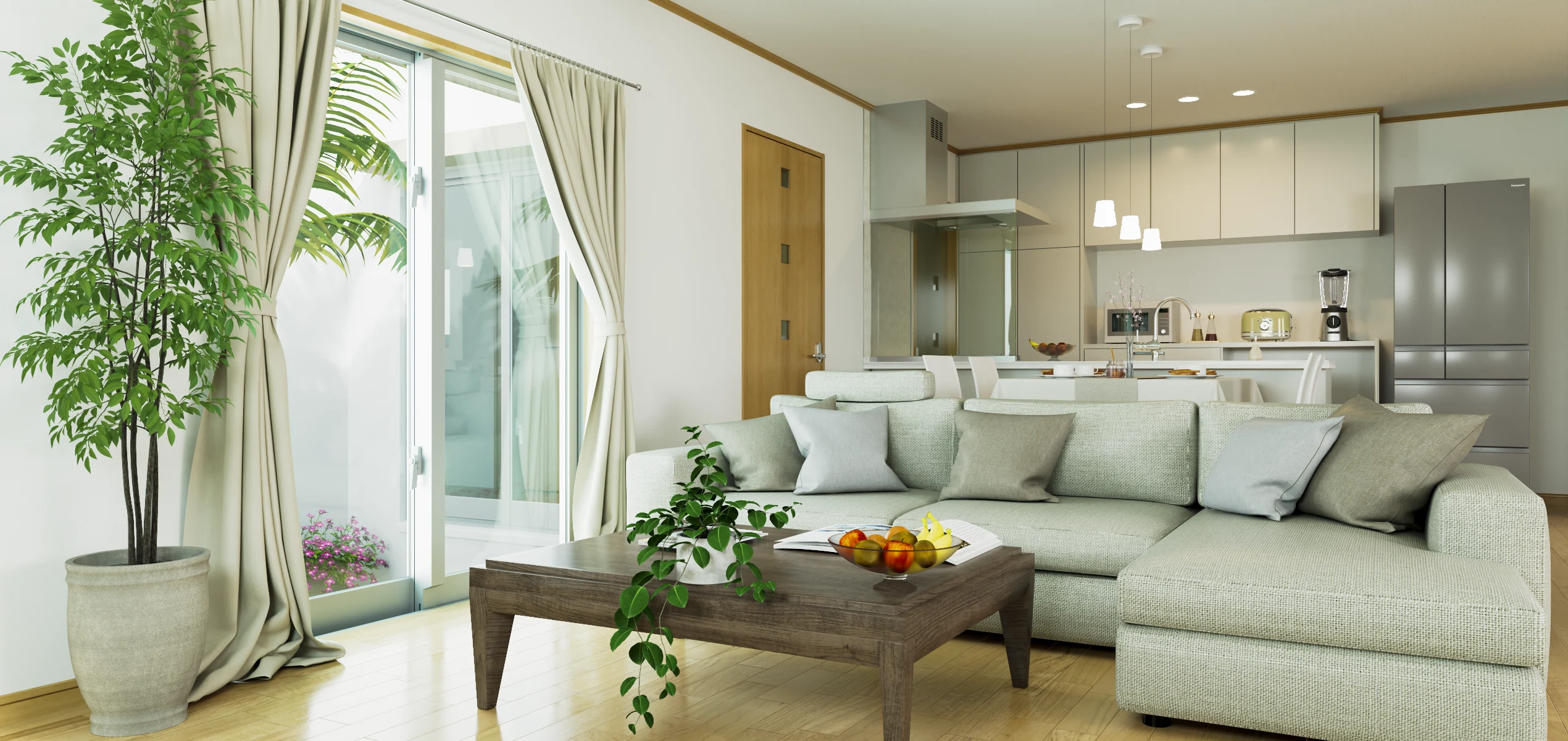 暮らしを想像できるリアルな内観パースで、デザインの魅力をお伝えします。